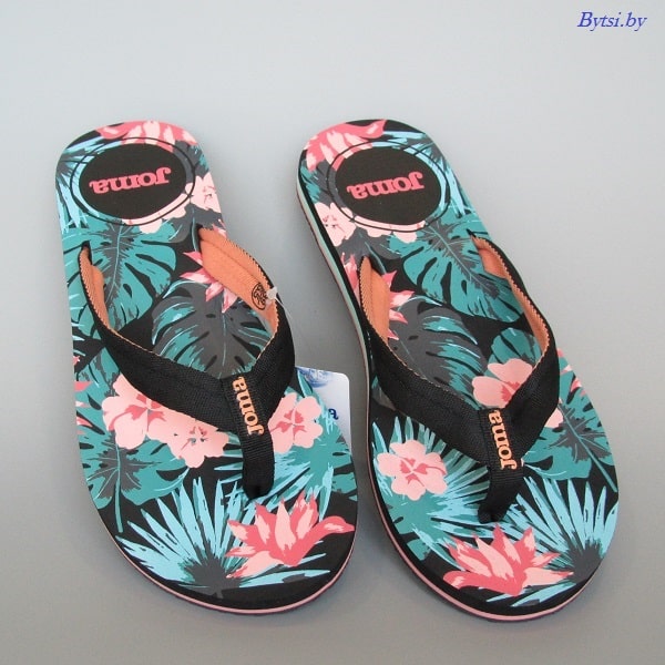 Женские сланцы JOMA S.NOAH LADY 2201 W черные с ярким цветочным принтом Артикул SNOALS2201