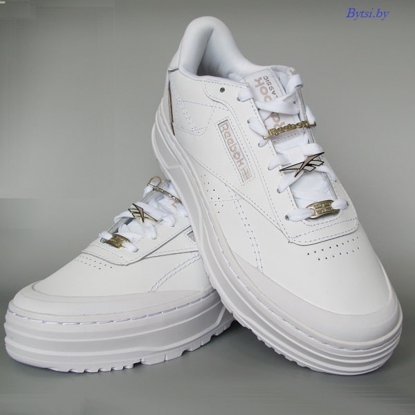 Кроссовки женские REEBOK CLUB C DOUBLE GEO W белого цвета. Премиальные кожаные кроссовки Reebok на массивной подошве. Артикул GX8766